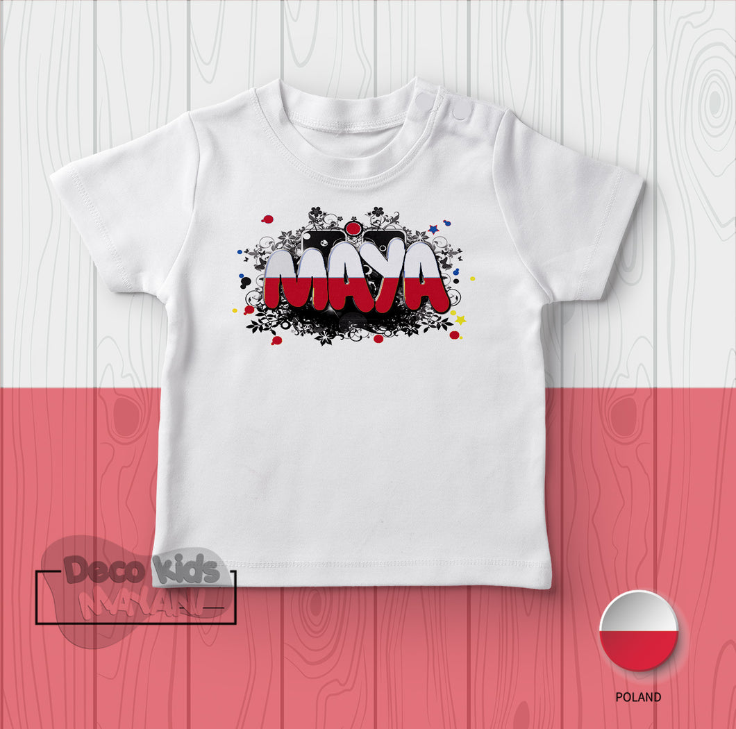 T-shirt Pologne enfant personnalisé avec drapeau de la Pologne. T-shirt 100% coton manches courtes. Lavable en machine à 30° sur l'envers.