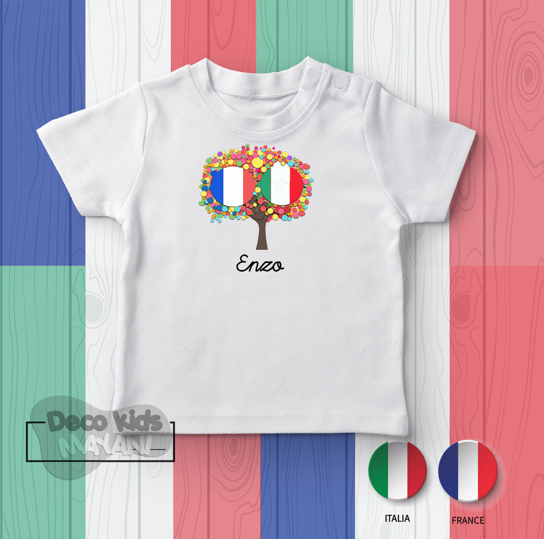 T-shirt France Italie personnalisé. T-shirt 100% coton manches courtes. Lavable en machine à 30° sur l'envers.