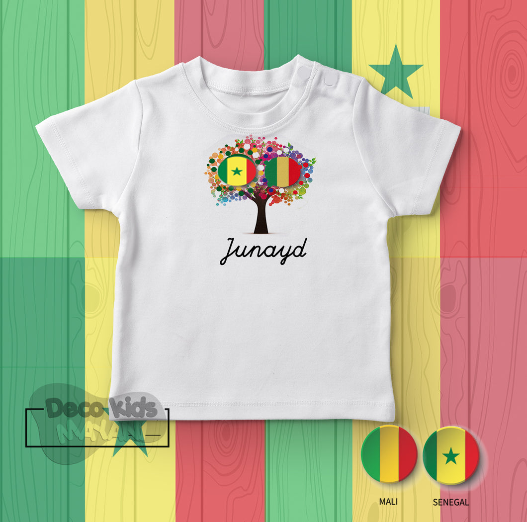 T-shirt Senegal Mali enfant personnalisé. T-shirt 100% coton manches courtes. Lavable en machine à 30° sur l'envers.