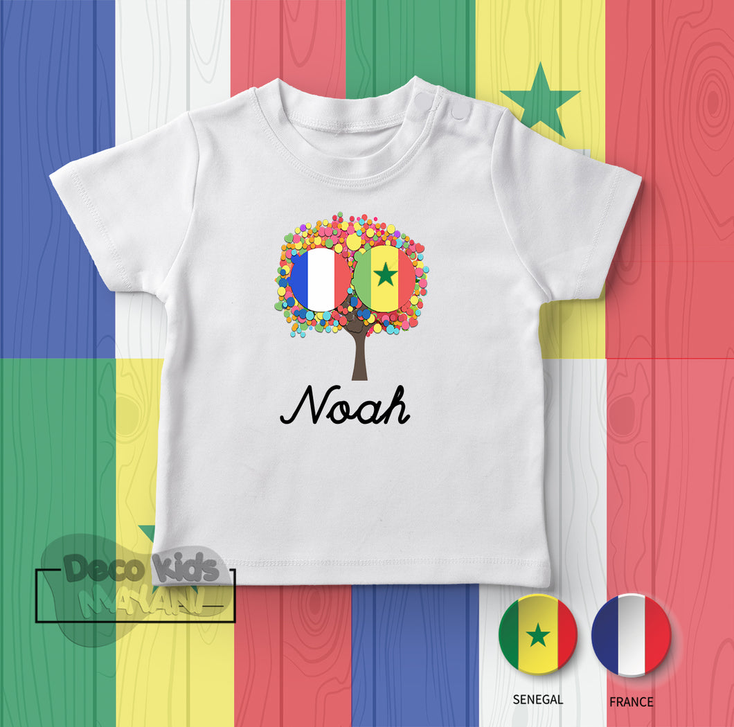 Tshirt France Senegal Personnalisé. T-shirt 100% coton manches courtes. Lavable en machine à 30° sur l'envers.
